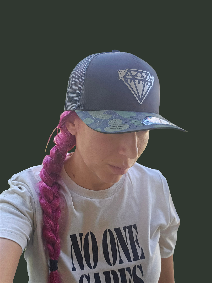 Black and green camouflage bill snapback- stainless logo